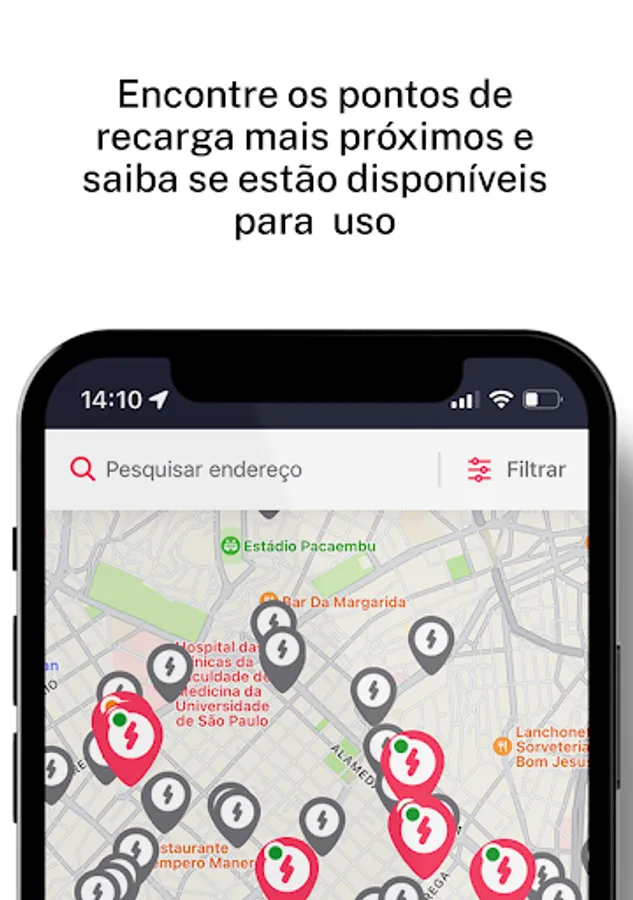 Whichever electric you're driving - Cherry Arrizo 5e, Nissan Leaf, Renault Zoe, Peugeot e-208, BMW i3, BMW iX, Mercedes EQC, Mercedes EQS, Fiat 500e, BYD Tan, BYD Han, Audi e-tron, JAC E-JS1, JAC E-JS4, Jaguar i-Pace, Porsche Taycan, Mini Cooper, Volvo C40 or any other electric car - the Tupinambá App allows you to find the nearest charging stations and charge your vehicle without any difficulties.