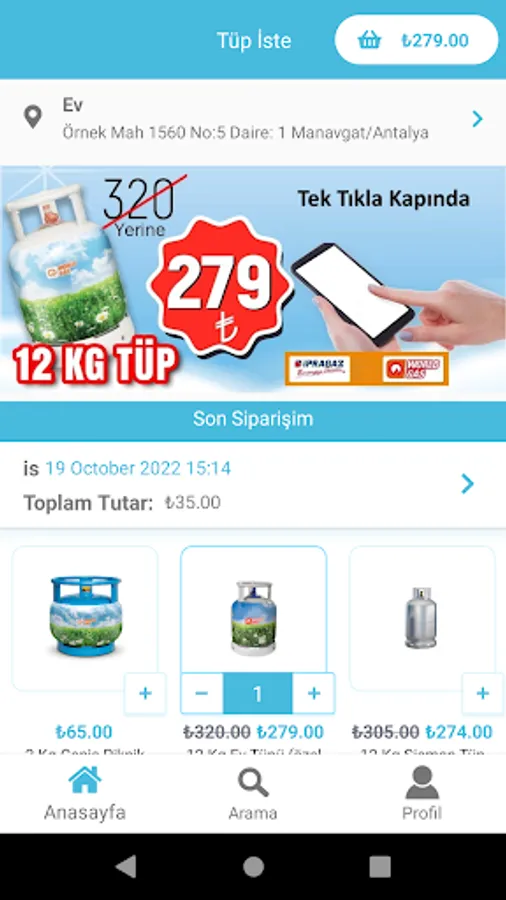 It is a mobile application where you can order cylinder gas for your home and workplace in Antalya Manavgat district.