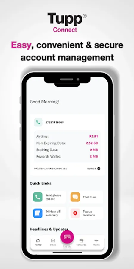 Experience the future of seamless mobile account management with the Tupp Connect Mobile App. With Tupp Connect you gain access to the most affordable non-expiring data & airtime rates in South Africa!
