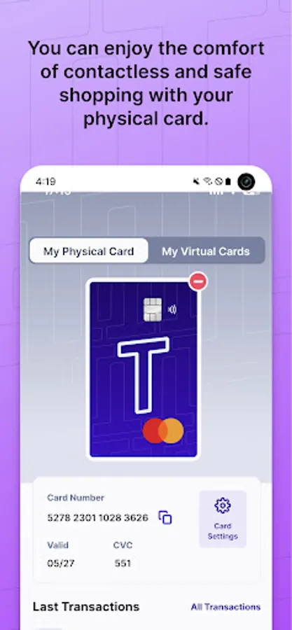 - You can enjoy the comfort of contactless and safe shopping with your physical card.