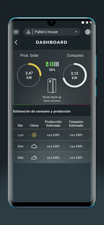 It even connects with the weather forecast, preventing possible power outages or days with less solar energy load so that you continue to consume your own energy.