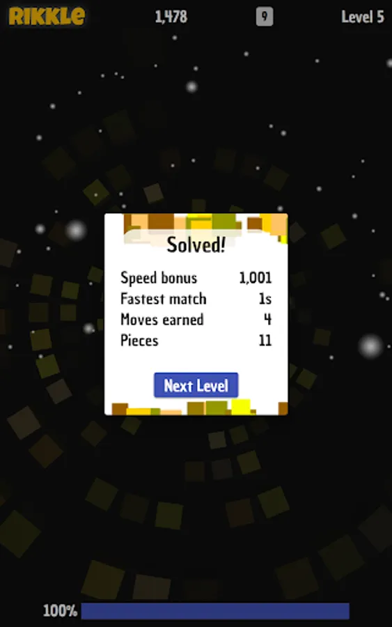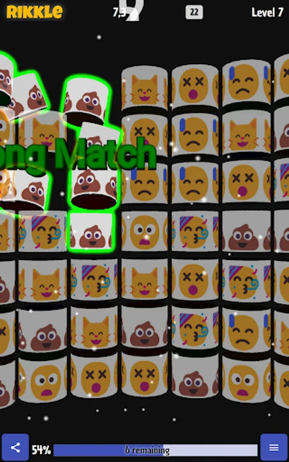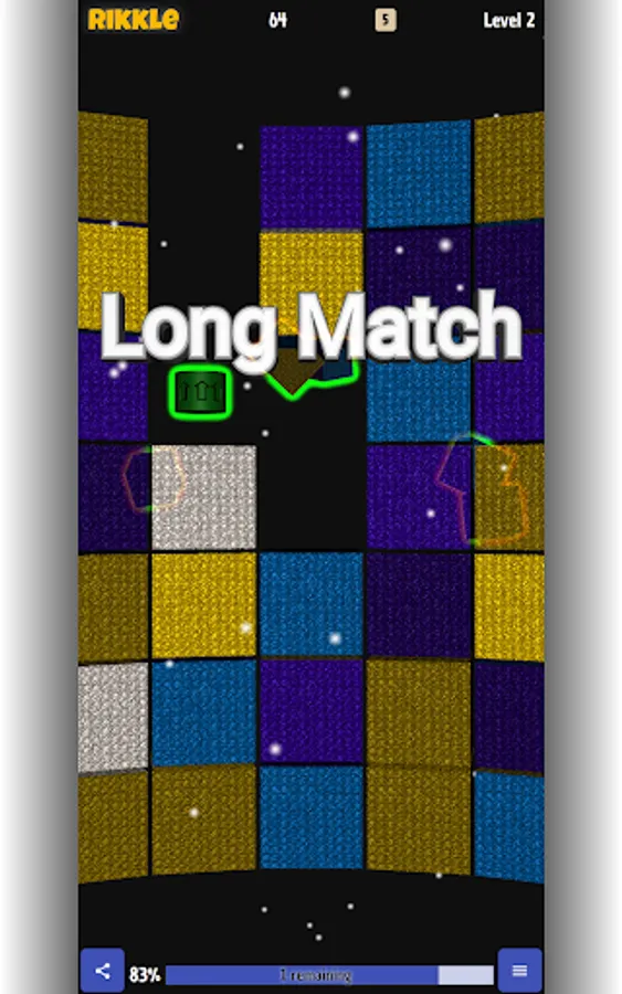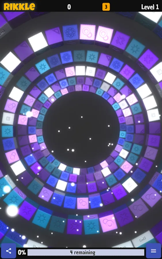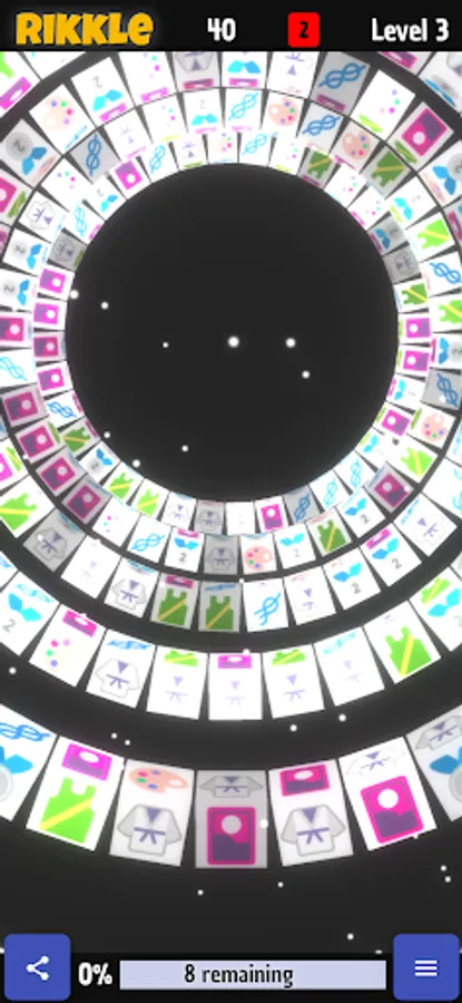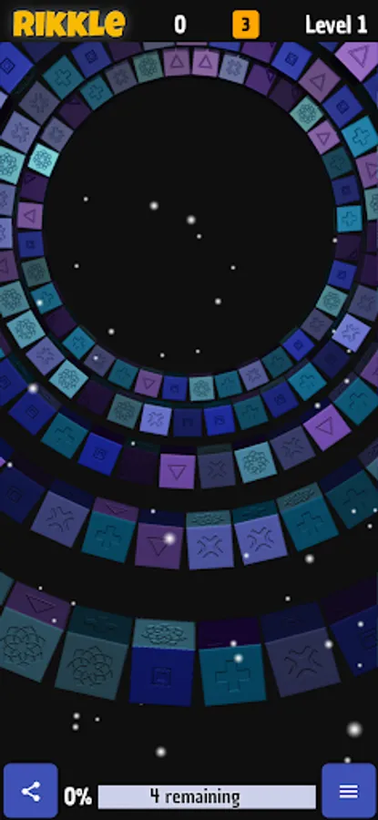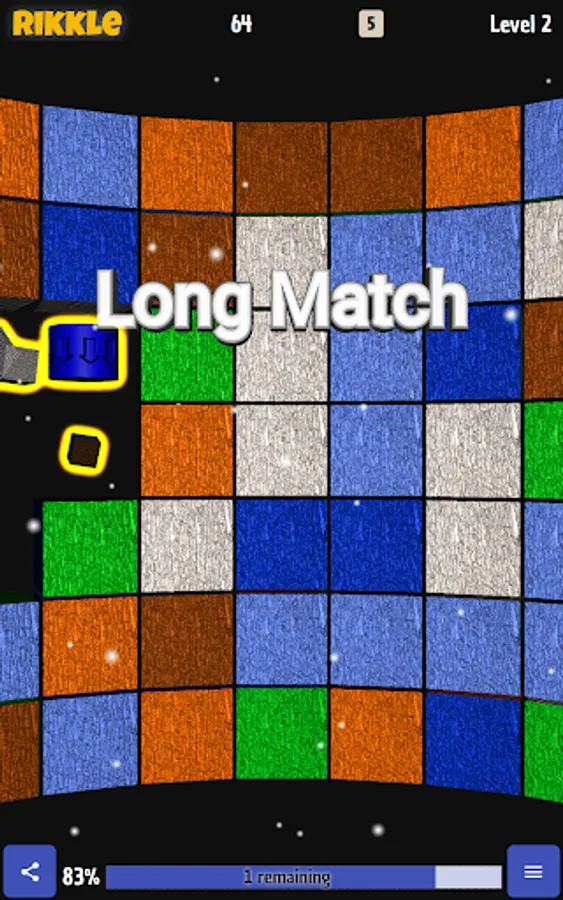 Enter the world of Rikkle! Rikkle is a cylindrical (cylind-RIKKLE) game of matching tiles. Move the rows of blocks to match at least 3 game-pieces vertically or horizontally; in any combination. Watch out! You only have so many moves before it's game-over. 😯 Earn moves and score big time with longer and faster matches!