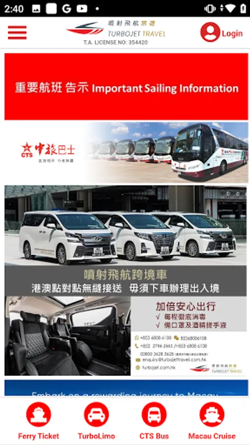 With TurboJET Mobile, you'll have instant access to your booking account and receive our latest news and reserve your ticket anywhere anytime. Download now for FREE and enjoy the ultimate convenience in sea travel!