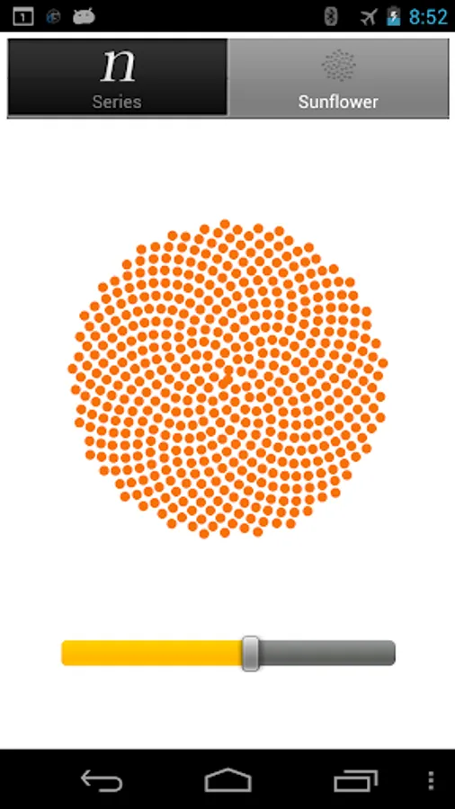 Quickly find Fibonacci numbers. Computes the first 46 numbers in the Fibonacci series. Also shows a sunflower animation based on the golden angle, which is closely related to the Fibonacci series. This app has nothing to do with trading. To some people, Fibonacci numbers are interesting just because they are.