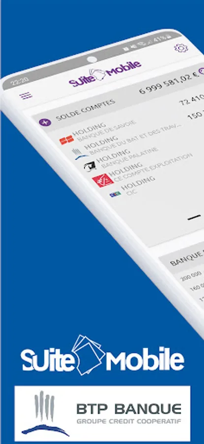 Thanks to the SUITE Mobile application from BTP Banque, control your "SUITE Entreprise" products from your mobile.