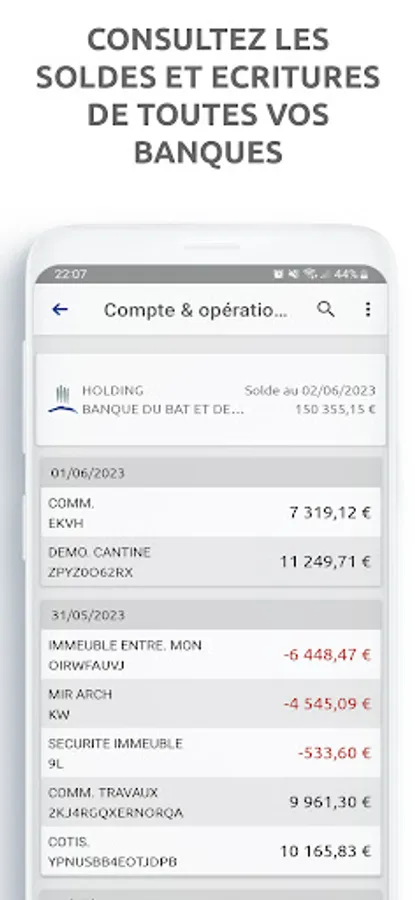 • Consult the balances and entries of all of your accounts in all your banks managed in your "Enterprise Suite" software