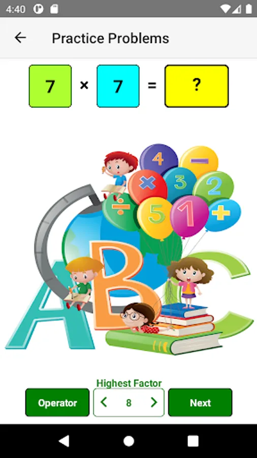 The Math Scholar is a fun educational app that helps kids dramatically sharpen their math skills! Its main purpose is to build mental math expertise through the use of a simple, entertaining interface. Originally designed for teaching the multiplication tables, it was expanded to include tables for all four of the basic mathematical operations. In addition to these tables, it includes both a Quiz mode and a Practice mode.