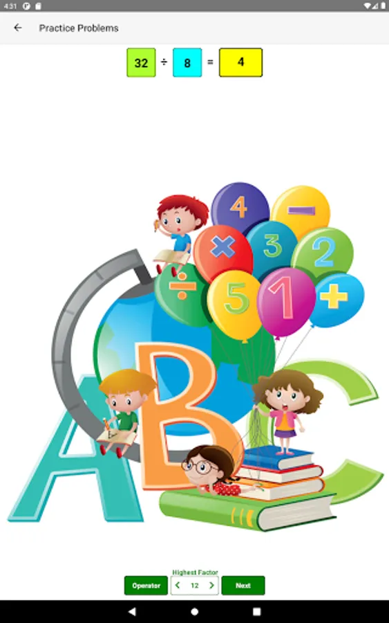 Kid-friendly interface. Ten minutes a day will help improve any child's basic math skills, especially the mental math skill.