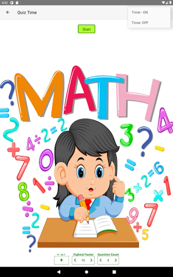 -- Select upper limit for Addends (Addition), Multipliers (Multiplication), Divisors (Division) and Subtrahends (Subtraction).