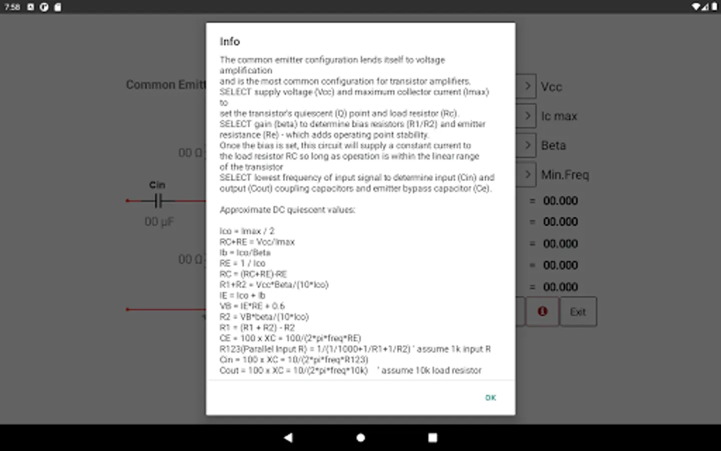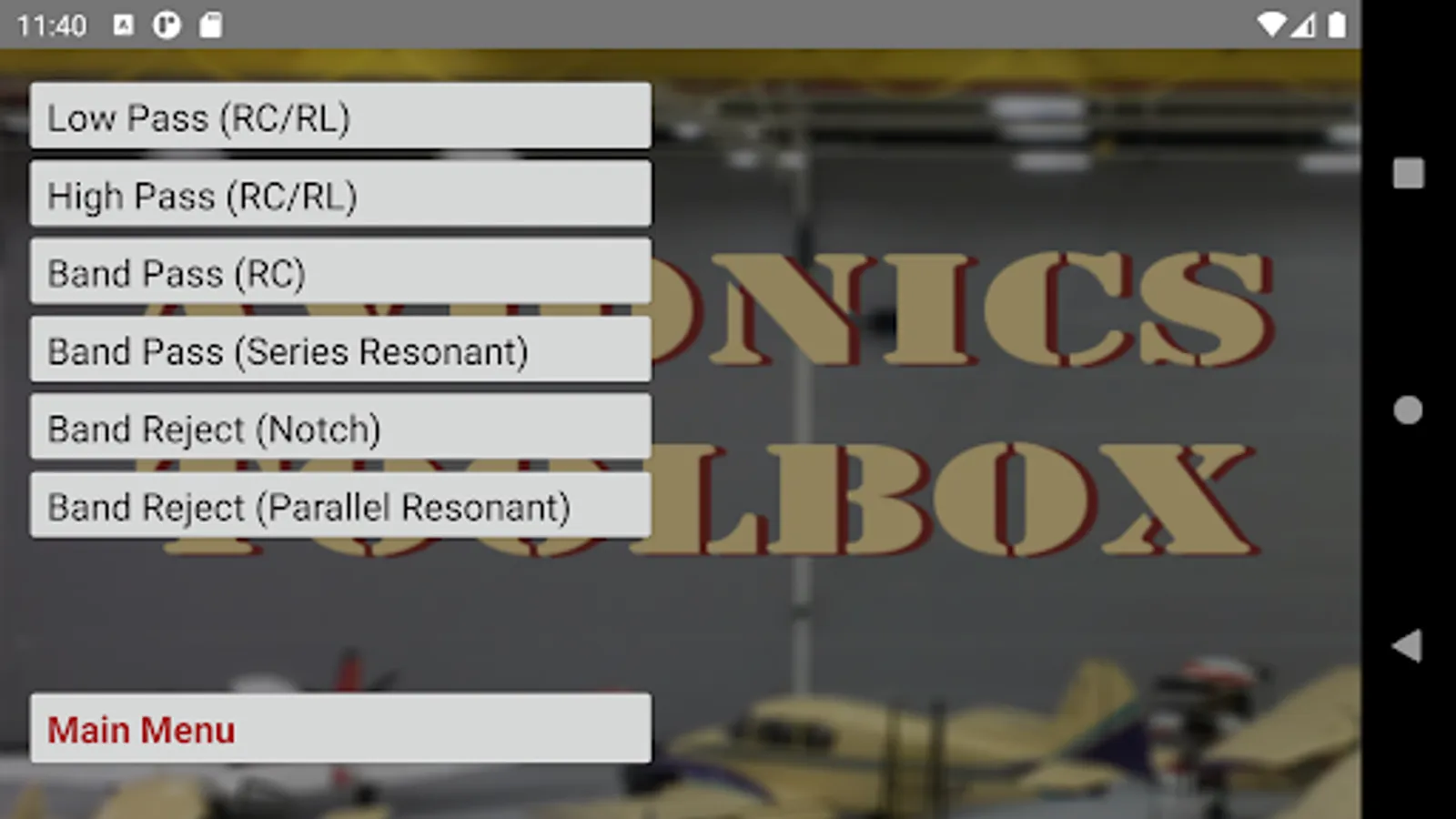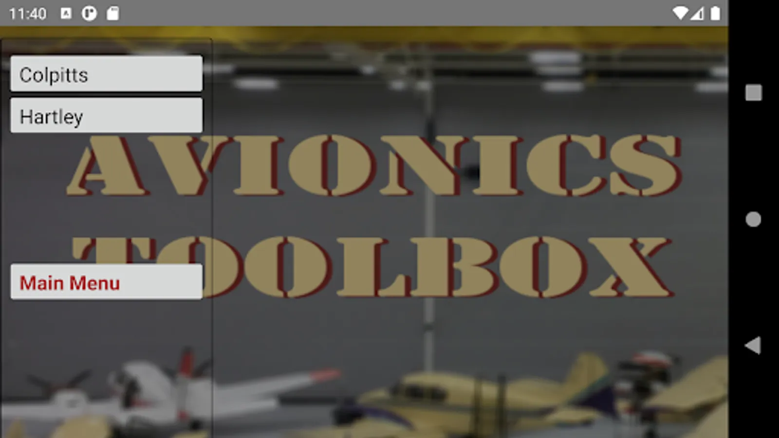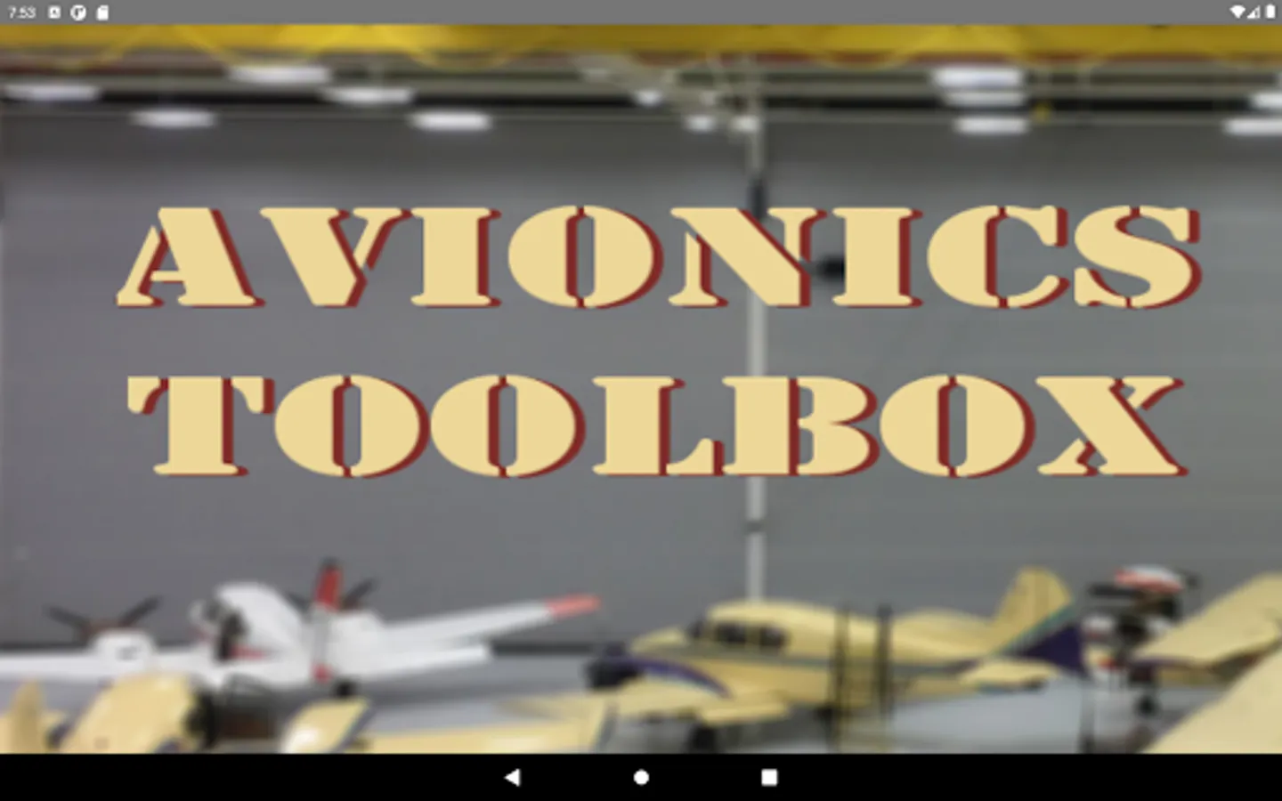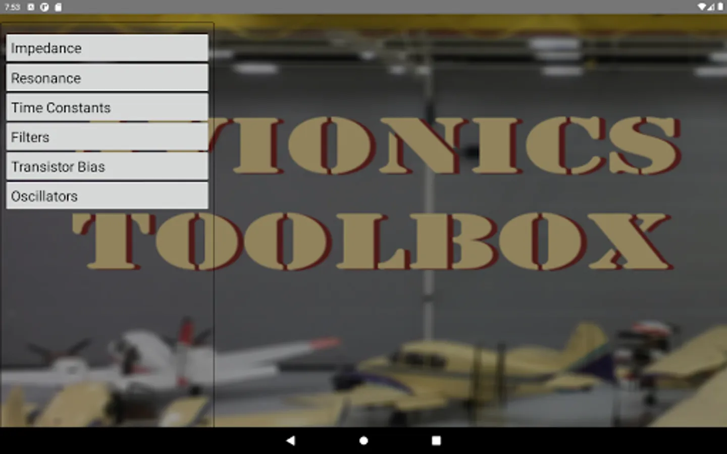 The Avionics Toolbox's purpose is to assist the student who is completing a course of study to become an Aircraft Electronics Technician (AET). Specifically, it emphasizes Introductory Aircraft Avionics, featuring real world circuits which have been tested in a lab setting as well as using an industry standard circuit simulator (Multisim). Graphics were designed to be viewed on standard Android devices (min 5.5 screen size). Viewing on larger devices (i.e. tablets, etc.) will provide the user a superior experience.