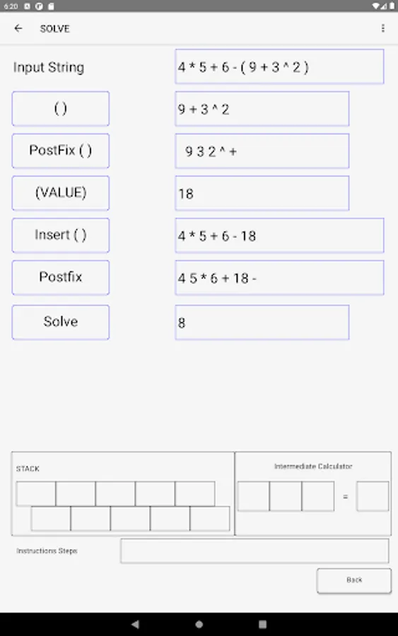 Computers, including smart phone calculators, desktops, etc. have built in functionality to properly interpret such expressions so we don't have to. But have you ever wondered what algorithms the CPU executes to get the right answer every time? This app demonstrates one such algorithm called the Shunt Yard, developed a few years back by Professor Edsger W. Dijkstra.