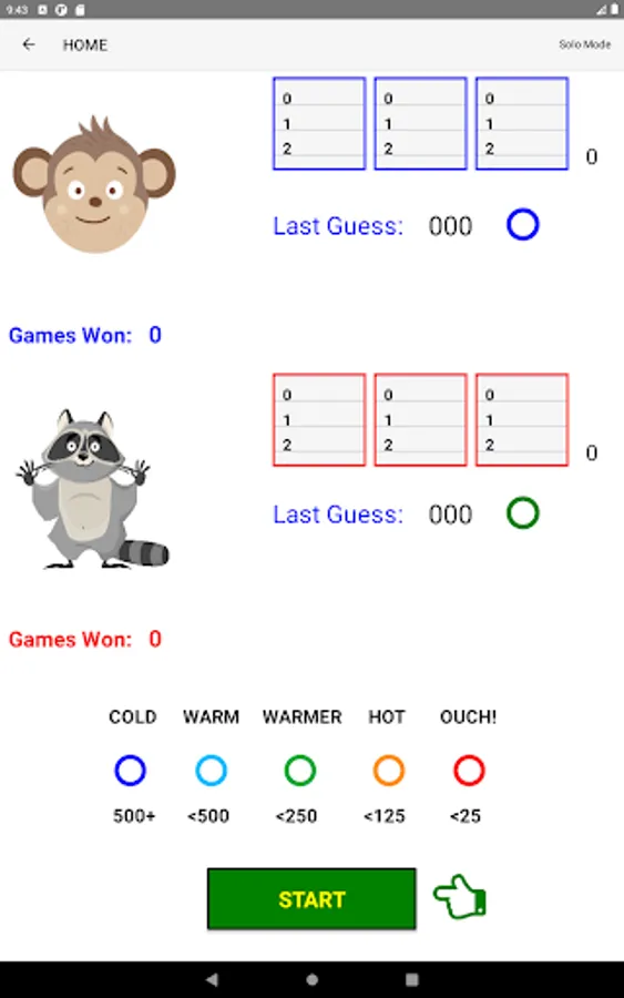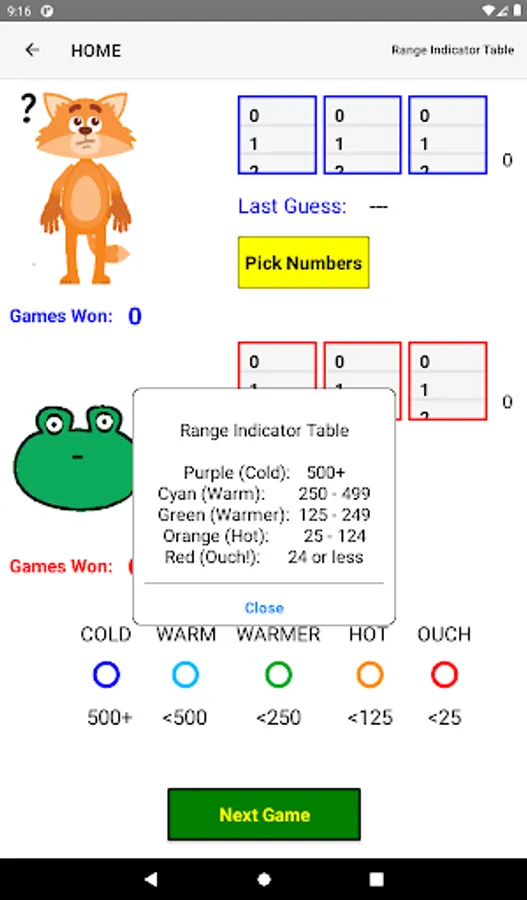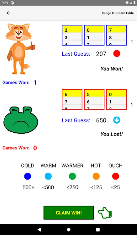 This process continues until a guess matches the Mystery Number. Once a player reaches the "Games To Win Match" mark, the game is over.