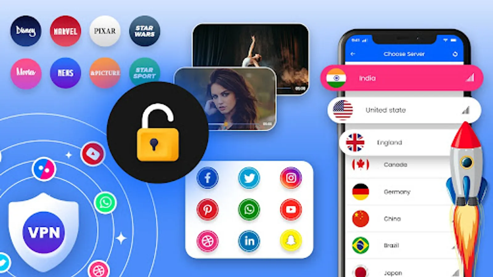 Stream videos, live sports, and TV shows without having to wait for them to buffer. You can listen to any popular song at any time. With unlimited VPN super unlimited proxy servers, you can improve your gaming experience.