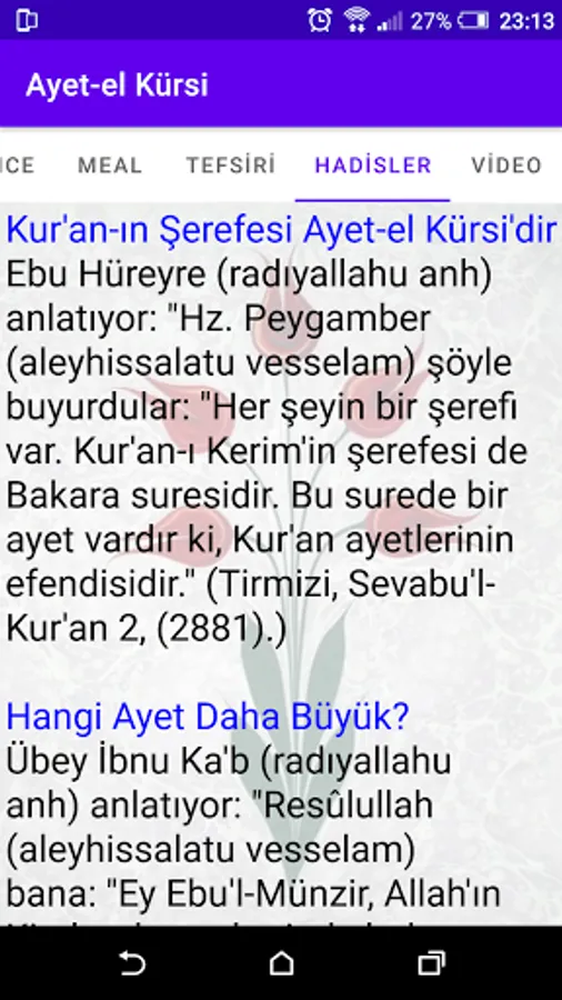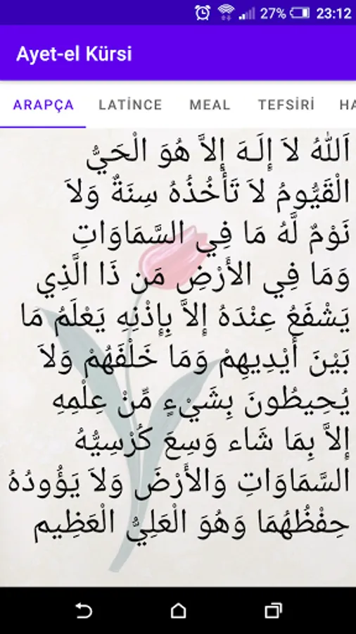 * You can read the interpretation (explanation) of the verse-el Kürsi.