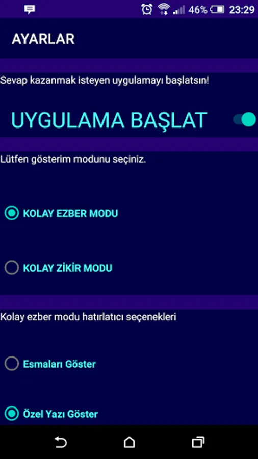You choose the easy dhikr mode in the settings and