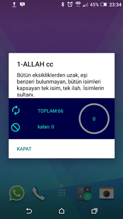 a little zikirmatik appears. You can continue chanting or turn off the reminder.