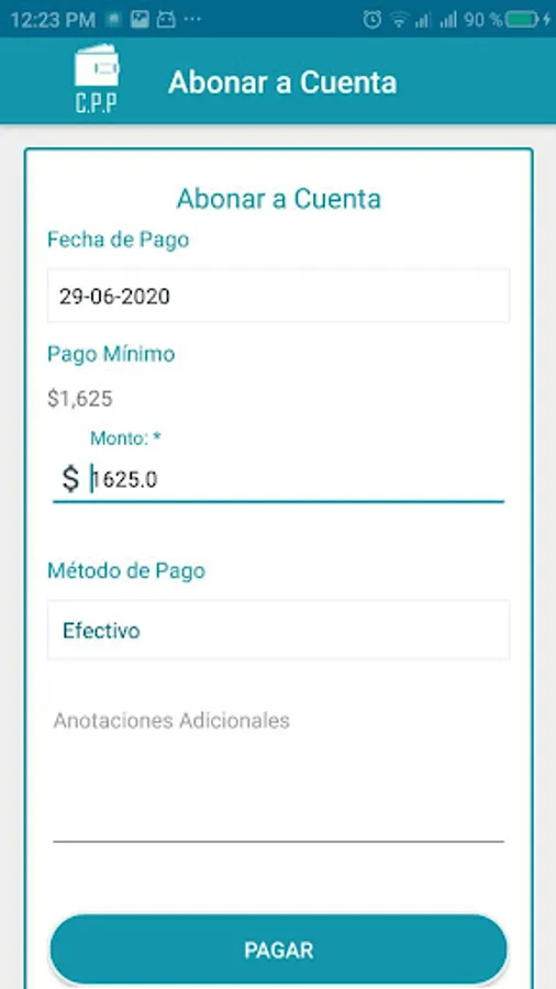 • Registers Date, Amount, Reference and some annotation of the amounts paid, distributing the amount in repayment of principal, interest or arrears when applicable.