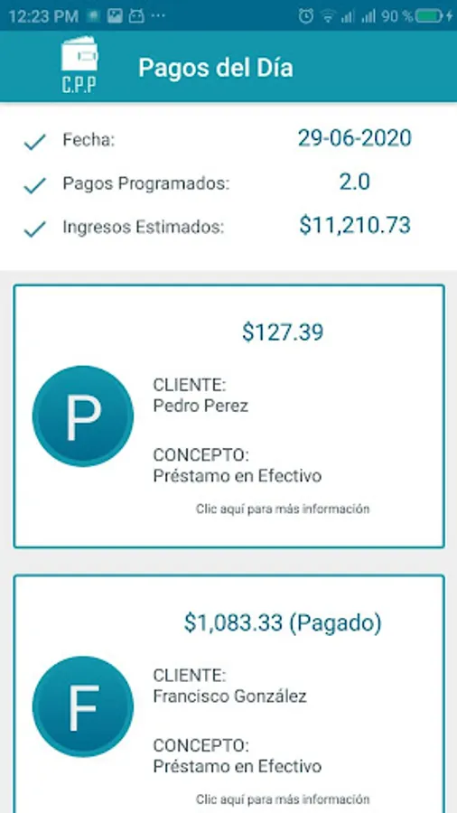 Control of loans and payments v2 is an application easy to use, but at the same time, it is a powerful program that allows to control the loans and the payments made by the clients or borrowers. It allows using various interest systems such as the simple and compound system; and you can control daily, weekly, biweekly, monthly or annual terms.