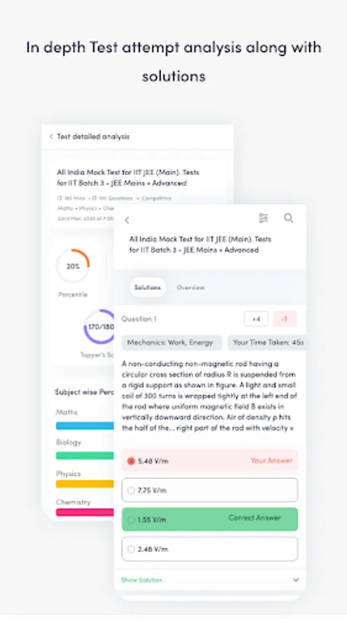 Day wise activity tracker of recently learned concepts and recently taken tests, with in-depth attempt analysis and solutions