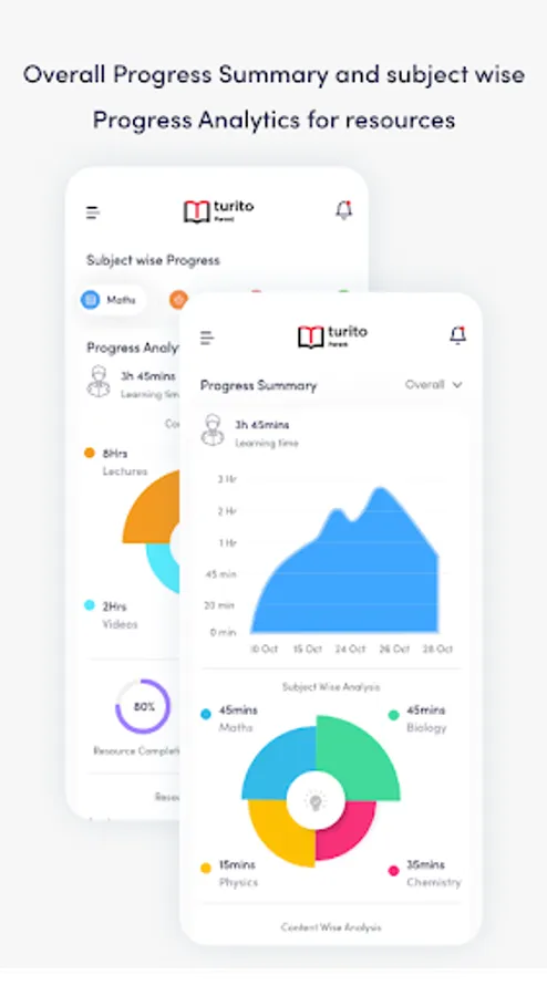 The app aims to provide parents with complete analysis and insights to help children in their learning process and keep them updated on the child’s journey with Turito.