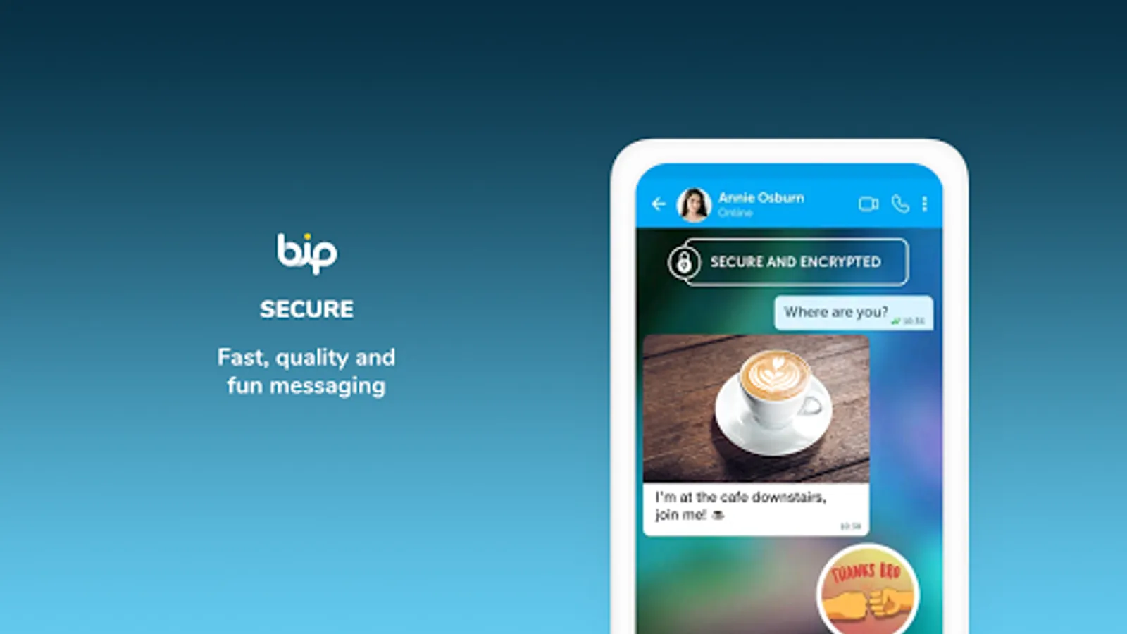 On top of core communication features such as instant messaging, HD quality voice and video calls; BiP presents the secure way to share photos, documents, voice messages, location and share your memories in your status. BiP also offers a wide range of services depending on your region and channels which allows you to reach out to large audiences.