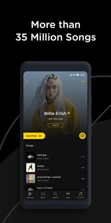 ♪ More than 35 million songs, latest albums, popular songs, video clips and video playlists,