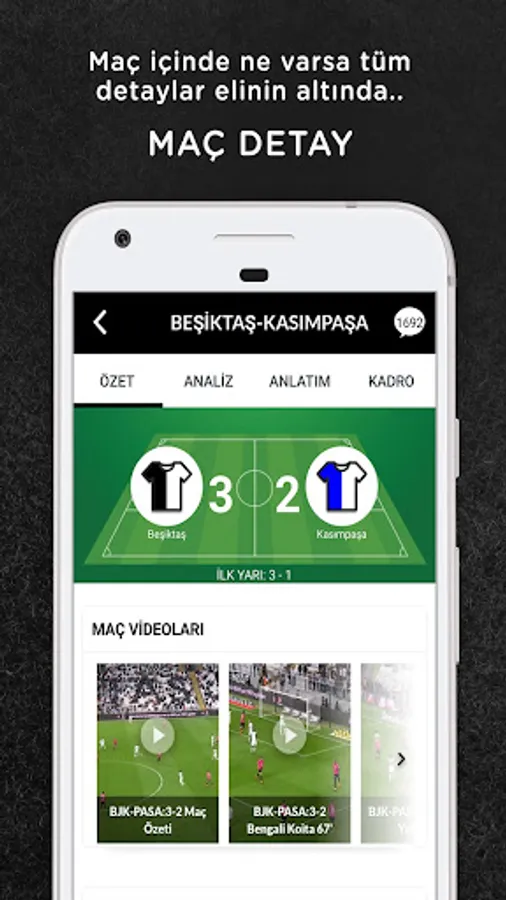 In GollerCepte 1903, you can customize your application and specify the types of notifications you want to receive. For example; You can receive details about a Beşiktaş match that you have determined as a notification. In this way, you can reach the details you wonder about BJK news more quickly.