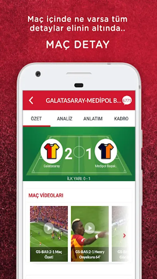● Goal notifications and pre-match developments of Galatasaray matches.
