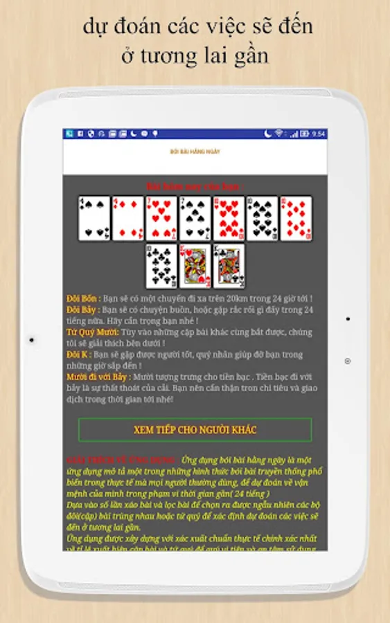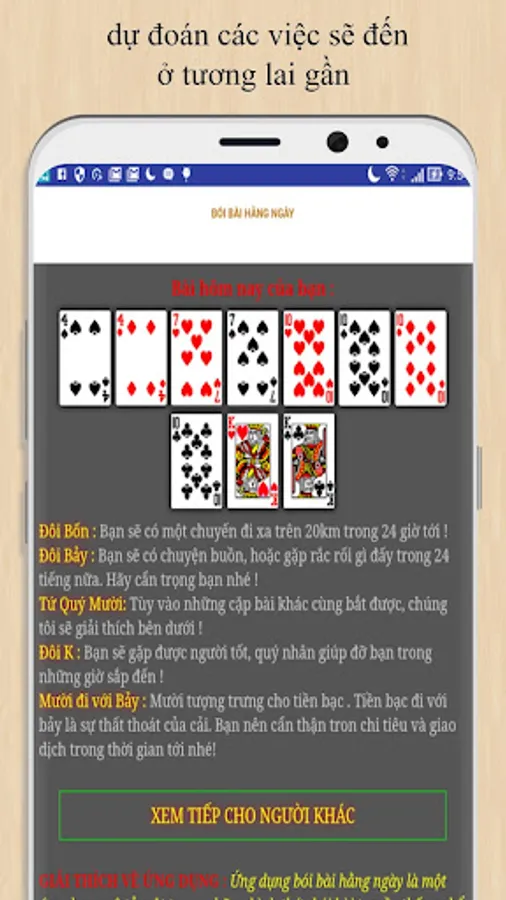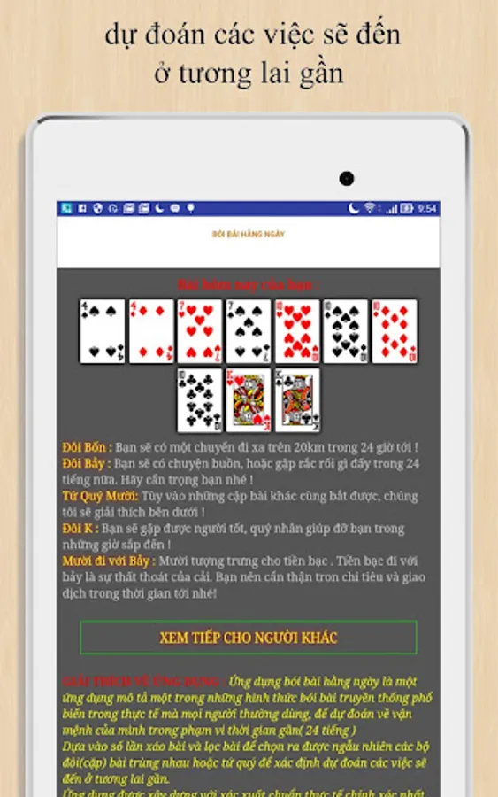 Applications tarot daily is an application that describes one of the forms of divination all popular tradition in the fact that people often use to predict their own destiny within the near term (24 hours)