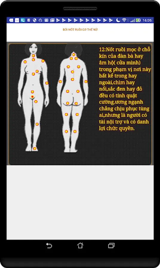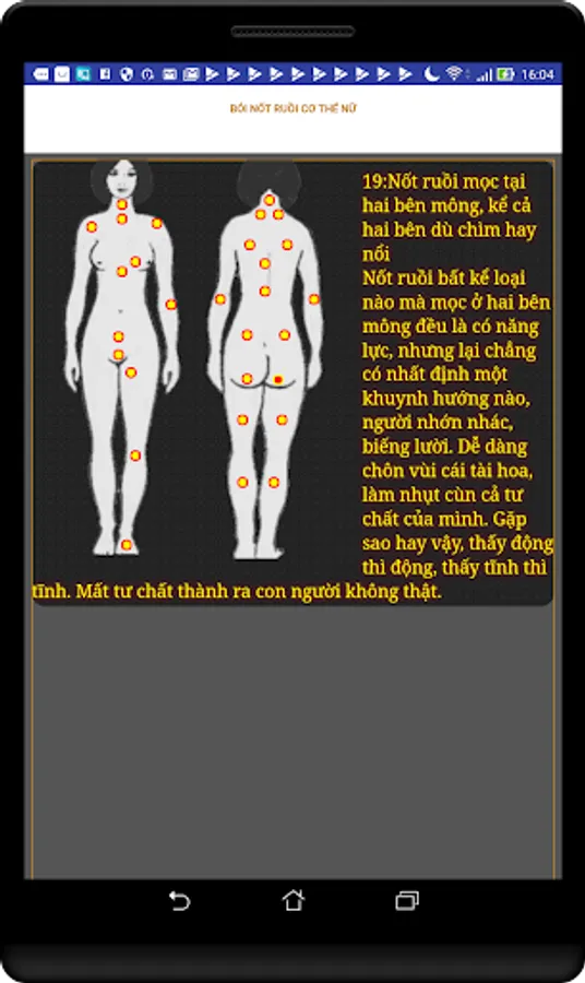 Tarot mole on a woman body. Usually everyone has moles, can have yellow, red or brown. It notion black or red mole really good fresh (mole son). However placement new mole on your body especially important, position moles on the body where is good, where is bad. App invite you to learn the meaning moles on the body the woman through the article below nhé