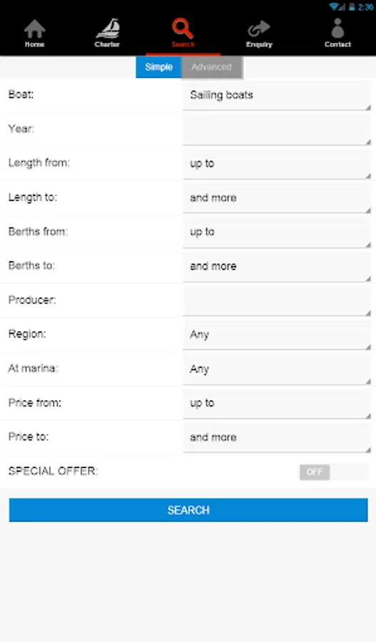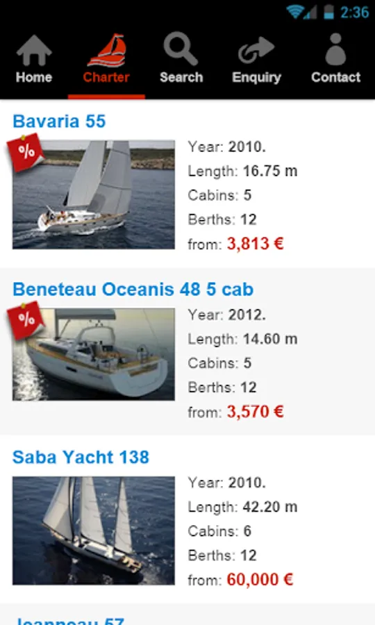 Our mobile app presents different offers and special deals, categorized by type with advance search.
