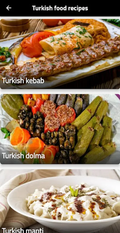 The app features a wide variety of recipes, from appetizers and delicious salads, to main dishes and delicious desserts. The application contains famous recipes such as Kebab, Dolma, Borek, and many other dishes that are an essential part of Turkish cuisine.