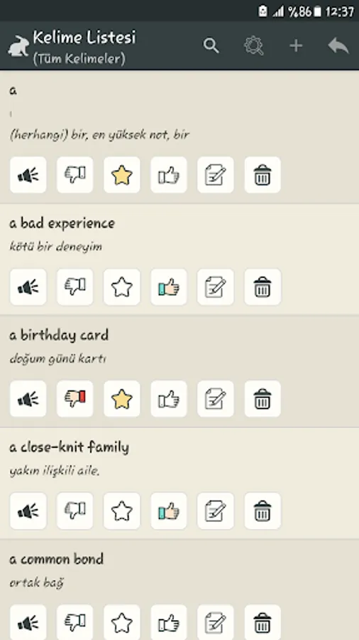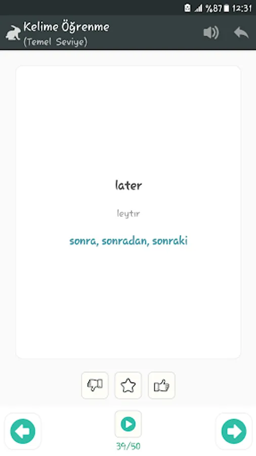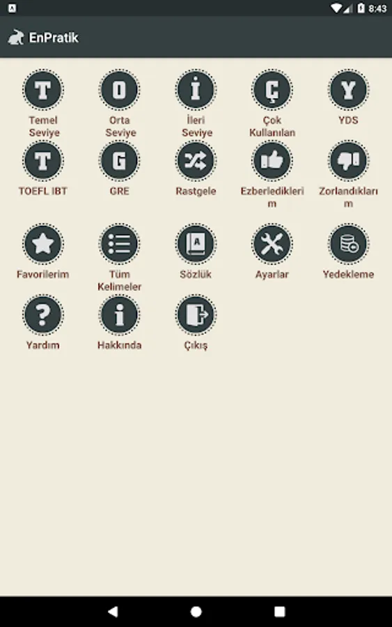 as well as memorizing words of English - Turkish, Turkish - English Dictionary There is also a feature.