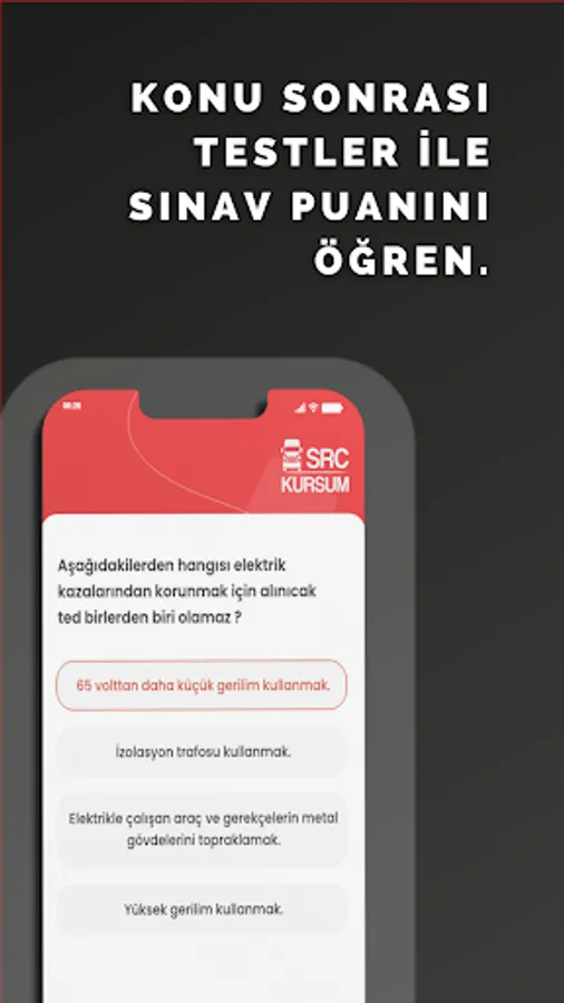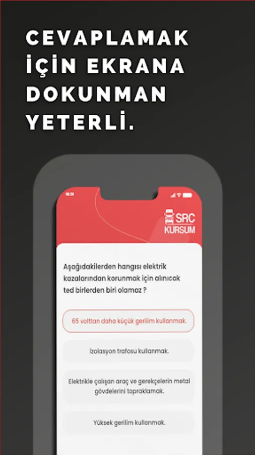 The tests included in the SRC app are designed similar to the questions used in real driver exams. Candidate drivers can improve themselves while solving tests to properly understand traffic rules, signs and signals.