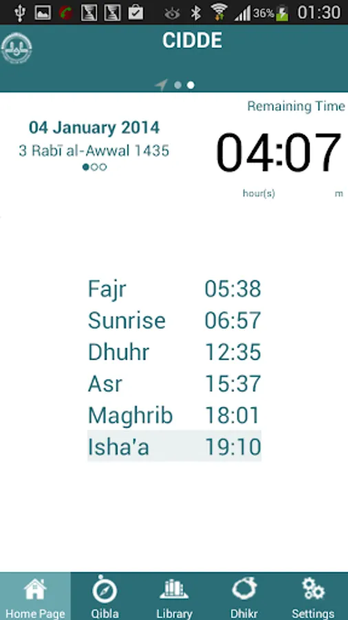 Adhan Times with remainder.