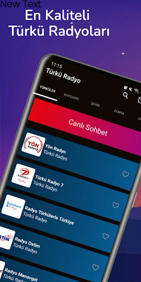 Turkish Radio Categories in our application are;