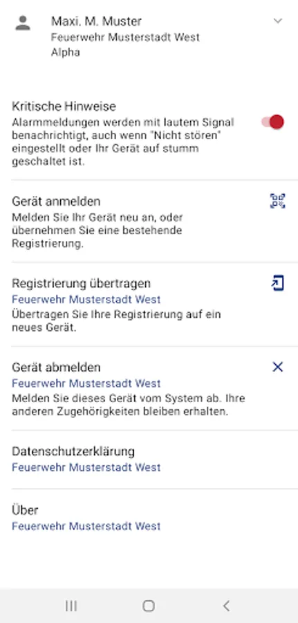 DE Alarm is the professional alerting app for authorities and organizations with security tasks. The app informs rescue workers about current operations by the associated control centers, i.e. it is a contemporary addition to pager alarms. The app has easy-to-use functions for an overview of the most important data of the mission, for quick preparation and for reporting back on participation in the mission. Registration in the app is only possible for employees of emergency organizations using a personal code and is one hundred percent data protection compliant.