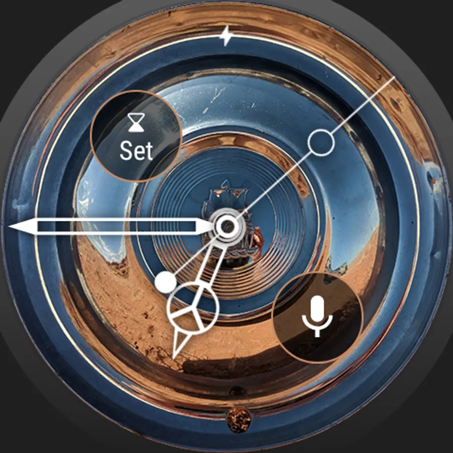 Purchase the full version in the app with 9 different hubcaps, 2 different watch face styles and 3 different complication layouts.