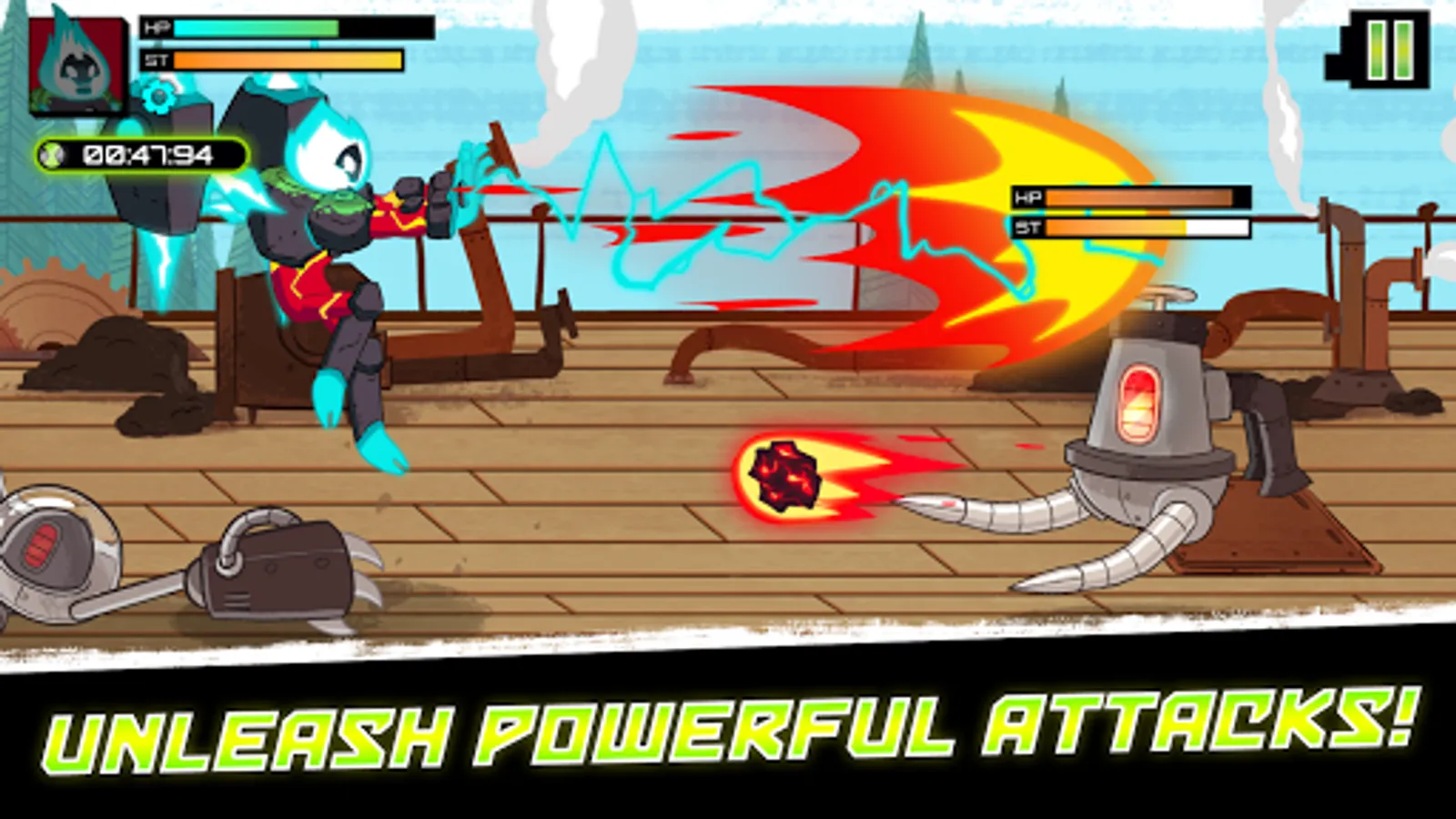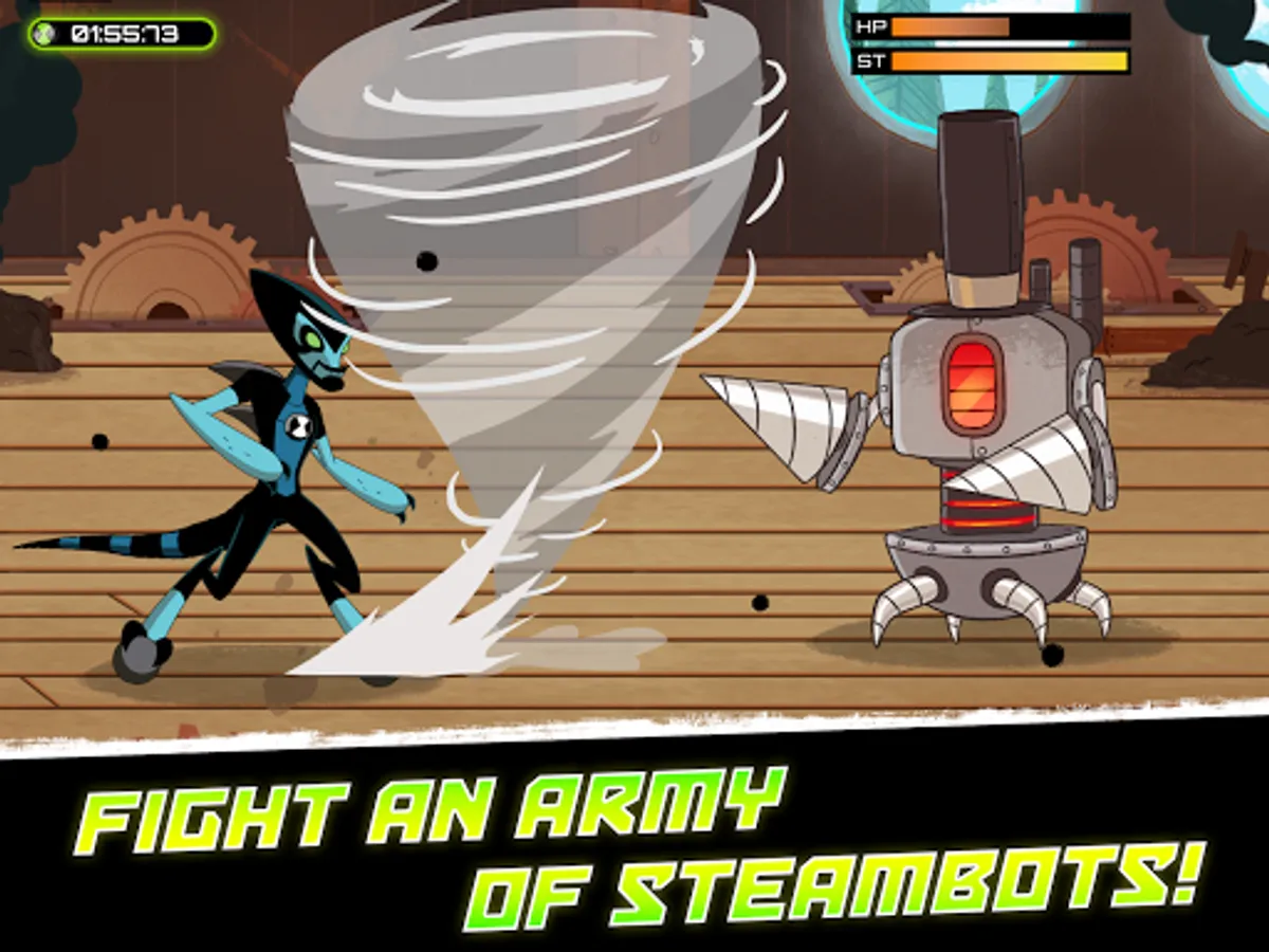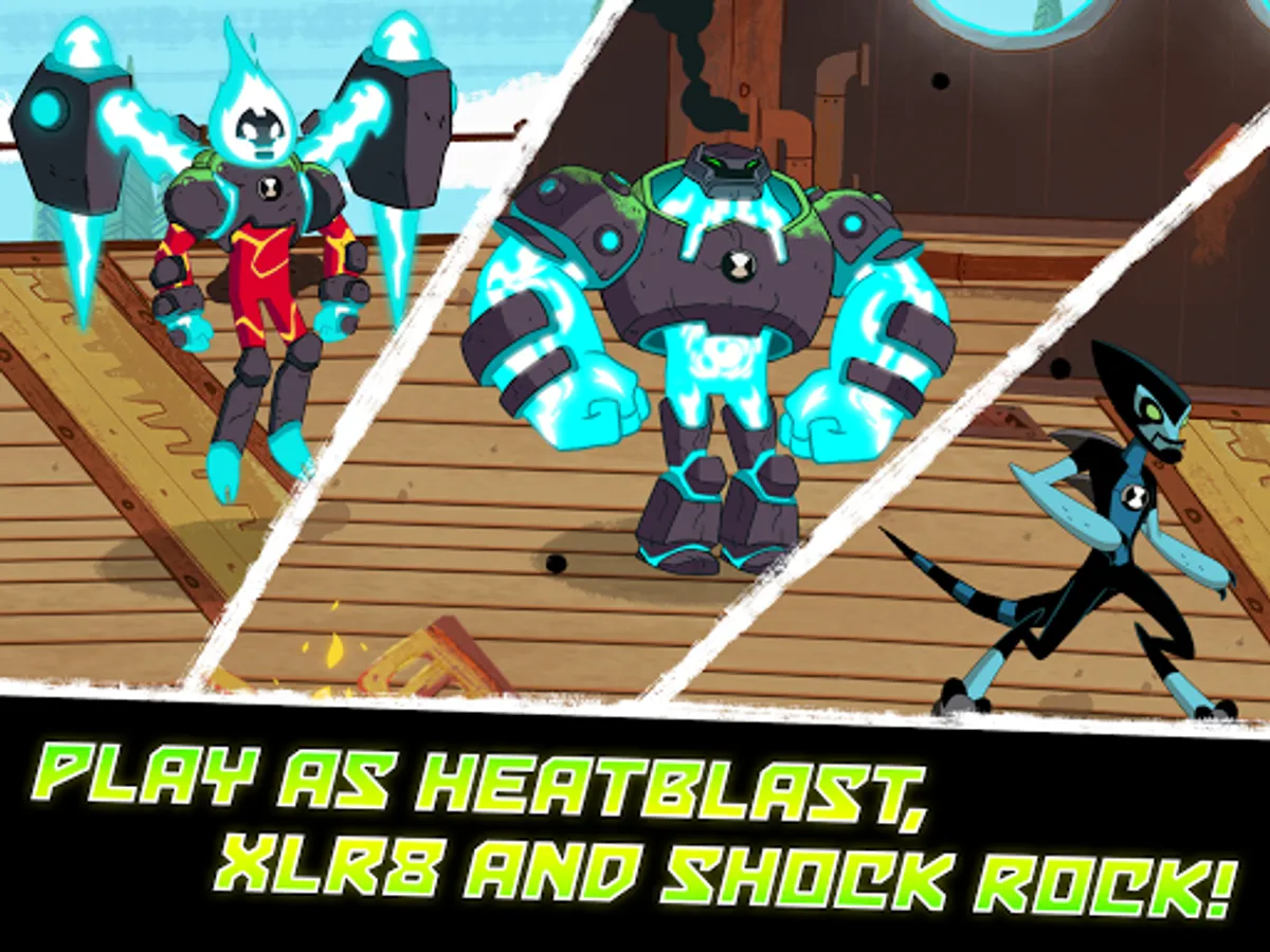 Punch, kick and smash an endless army of robot enemies with Ben 10’s aliens in Omnitrix Hero! Play as Heatblast, XLR8 and Shock Rock and take on Steam Smythe’s robots in lightning-quick epic battles. Time your attacks to really dish out the damage.