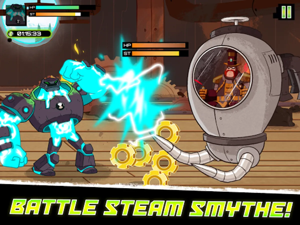 Steam Smythe has unleashed an army of steampunk robots! Now Ben 10 will have to use his alien powers to stop them. Play as Omni-Enhanced Heatblast, XLR8 or Shock Rock as you take on a never-ending assault of robot foes.