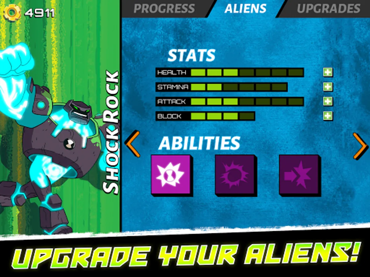 Add new abilities to your arsenal. Increase your stats to become faster and stronger. Unlock upgrades that give you additional benefits in battle. You’ll find new ways to get better and improve your aliens every time you play!