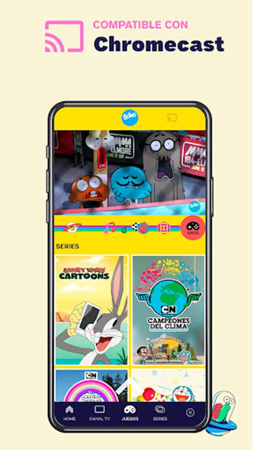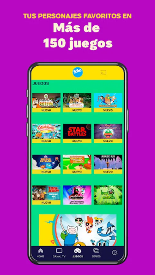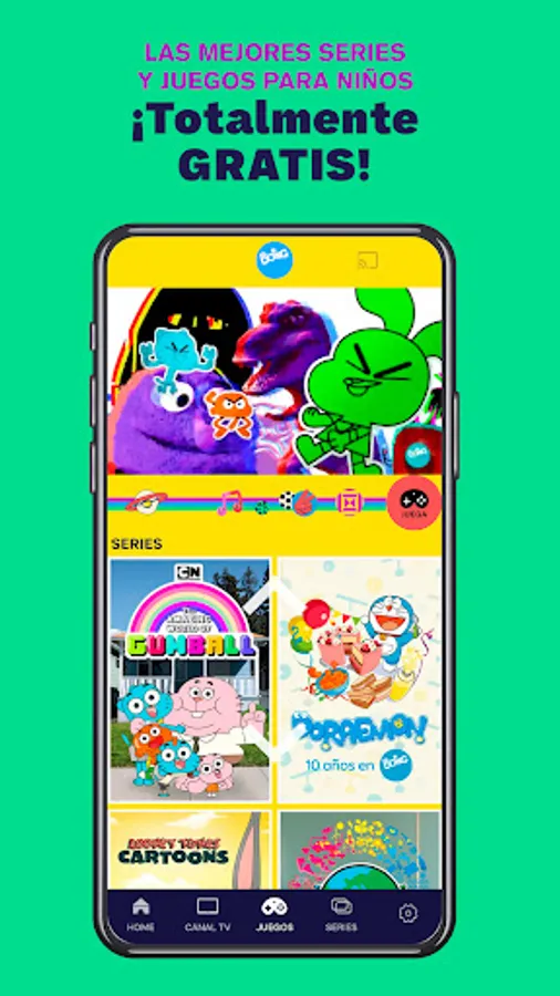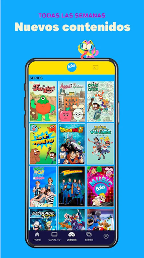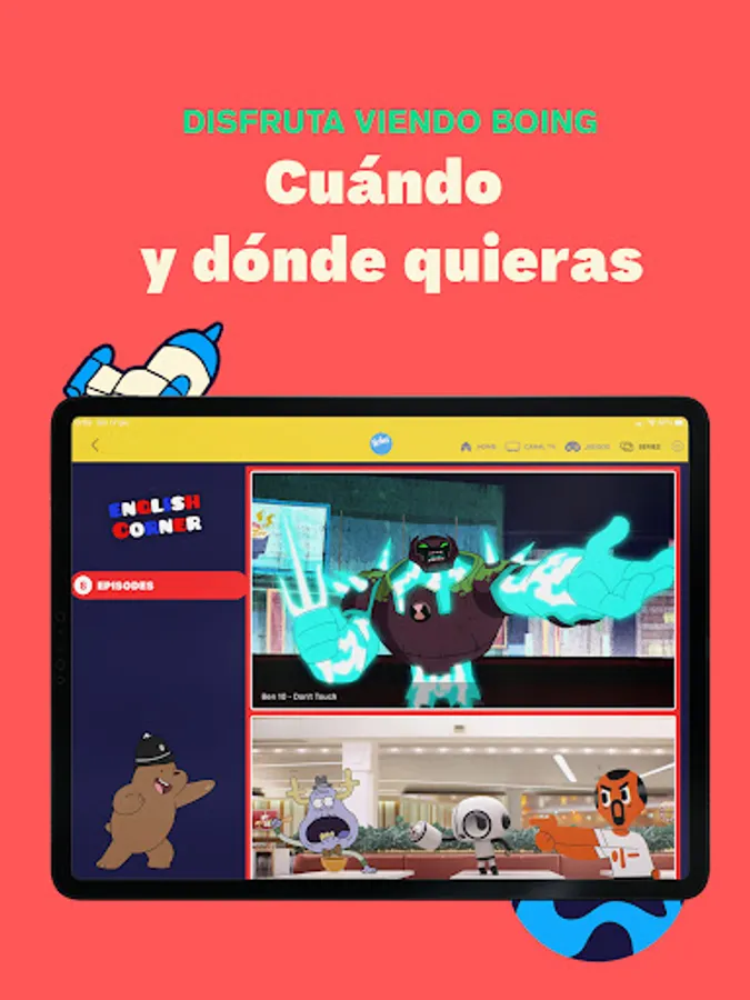 Boing App is the official application of the Boing TV channel, where the little ones can enjoy a free cartoon series app (in Spanish and English), watch the Boing channel live from any device and play more than 100 games with your favorite characters.