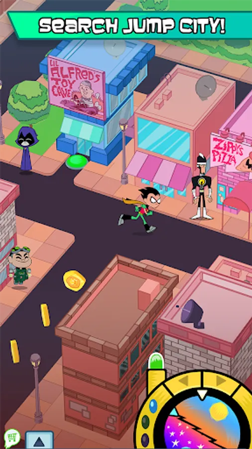 Race from store to store to shop for your favorite super hero figures. Complete special missions, enter tournaments, and unlock new areas on your journey to become the Jump City Mega Teeny Champion!