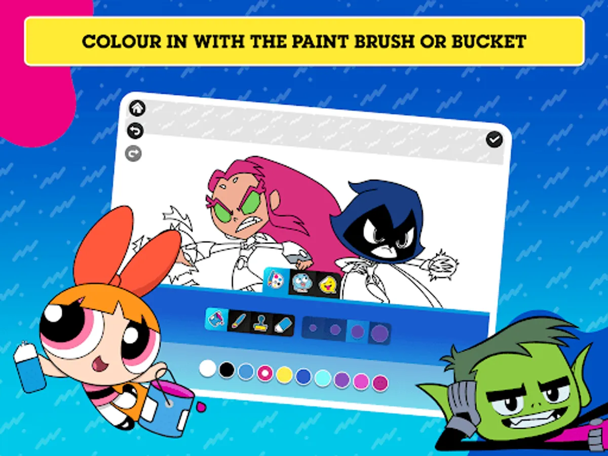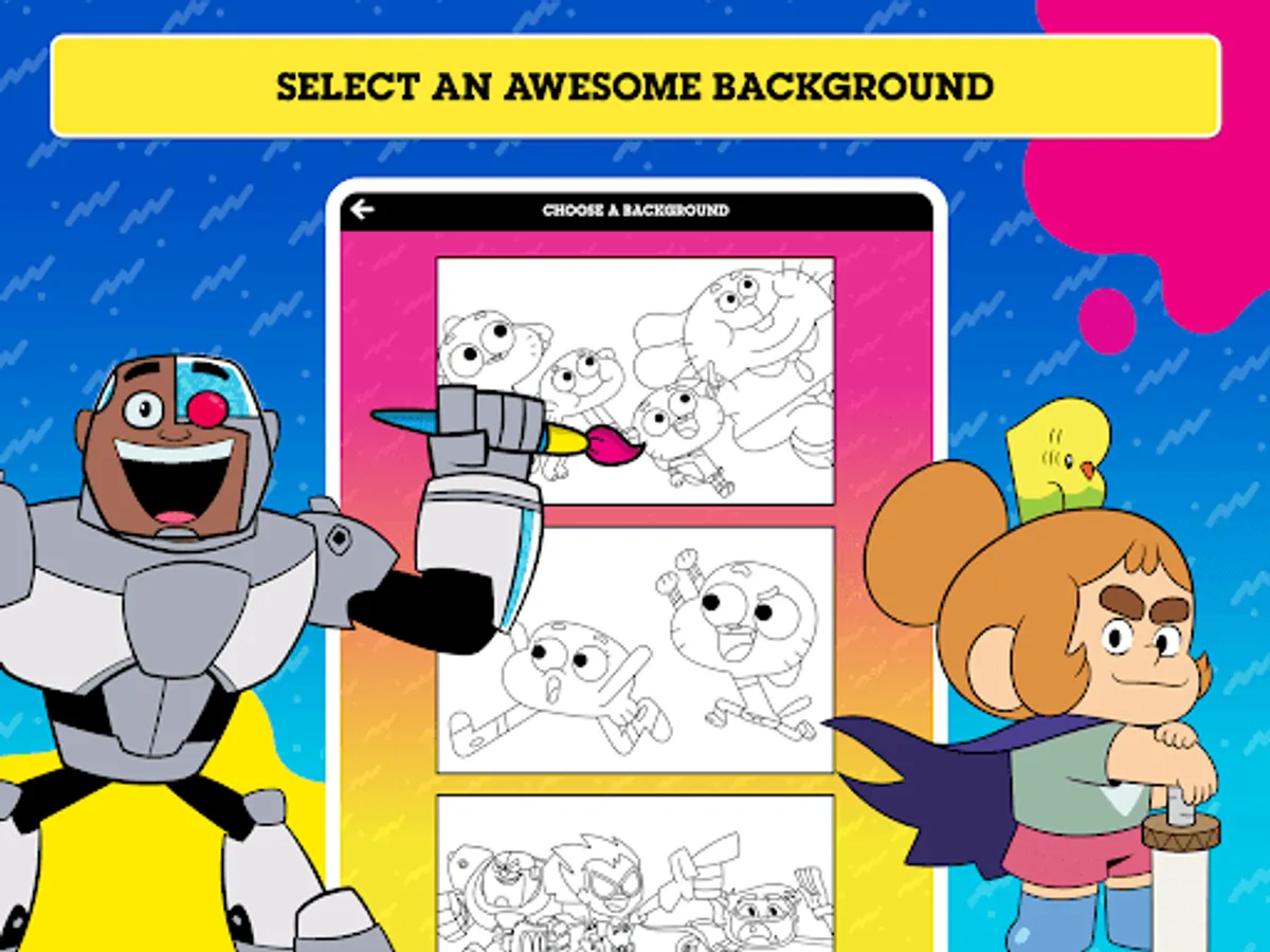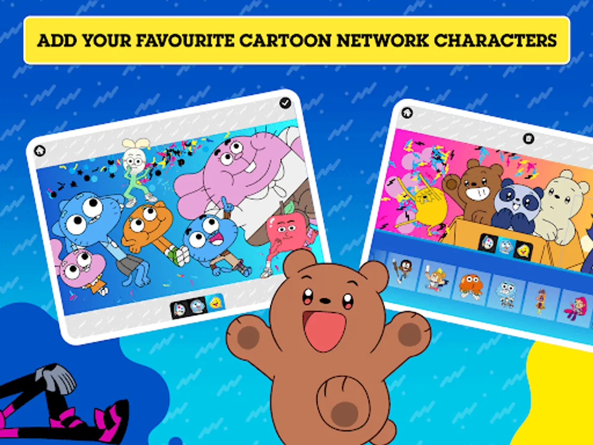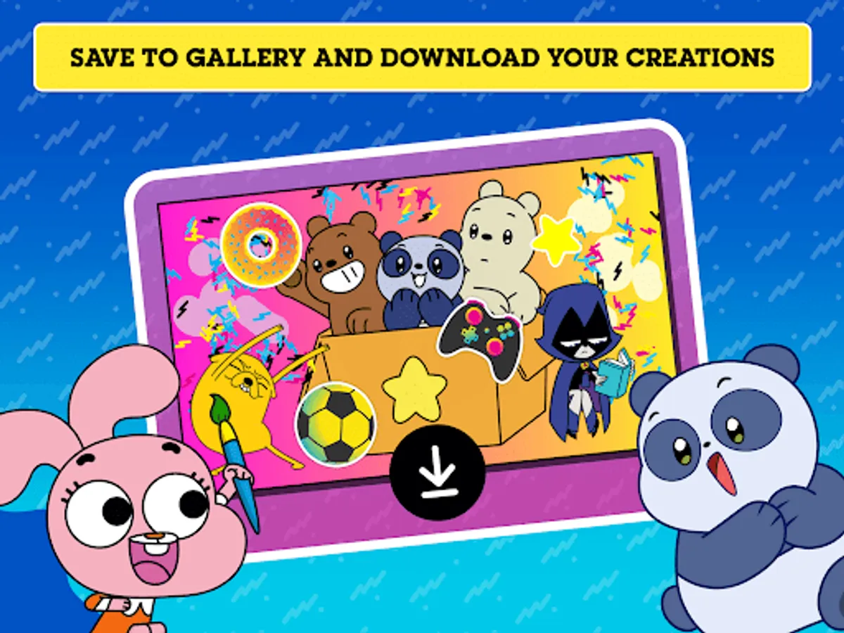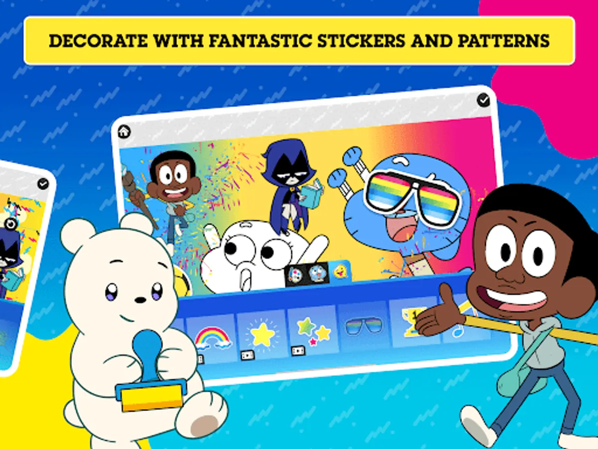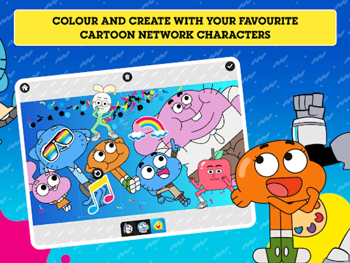 It's time to get creative with all of your favourite Cartoon Network characters! Choose from loads of colour-in backgrounds and explore a wide range of stickers including characters from The Powerpuff Girls, The Amazing World Of Gumball and We Baby Bears! Play with a variety of colouring tools, brushes, and more - then decorate your masterpiece with stickers! Watch your creation come to life as an amazing picture or an awesome animated video. Download your creation and share it with your family and friends!