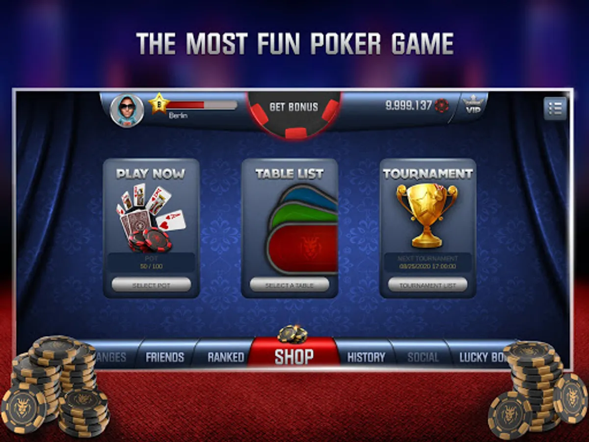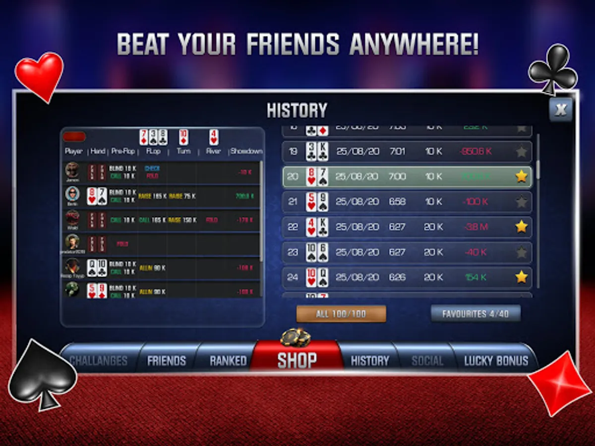 • EASY-TO-USE INTERFACE – Simple interface gives you the ability to call, fold or raise with just one tap.