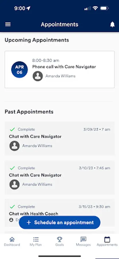 Your personal Health Coach will schedule regular one-on-one coaching sessions to help answer questions, set goals, complete exercises, and monitor progress.