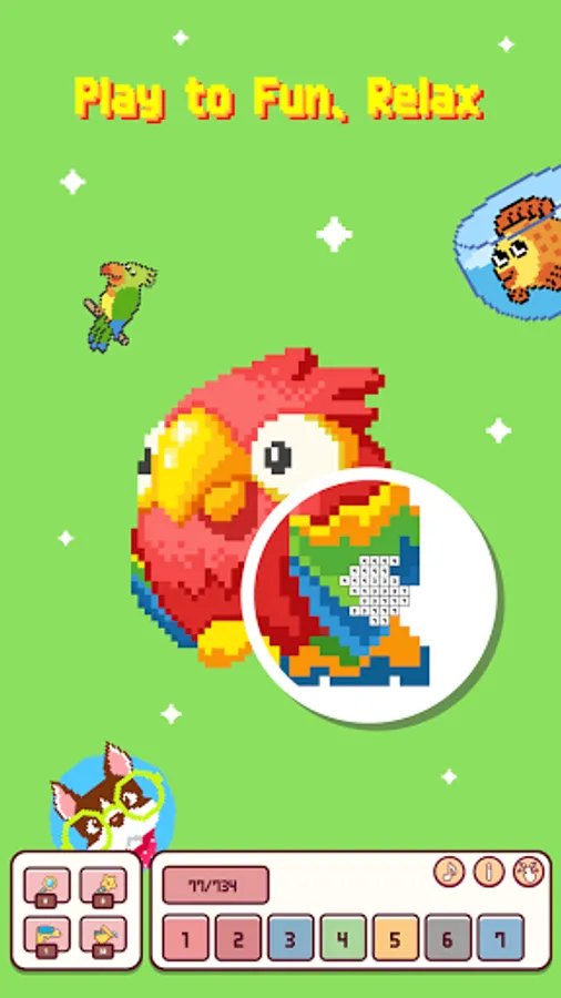 For adults, it is an effective way to stay calm and enjoy hours of fun and peace, balance your life! Spend boring time composing a pet picture showing your talent as your pixel artist to share with friends.