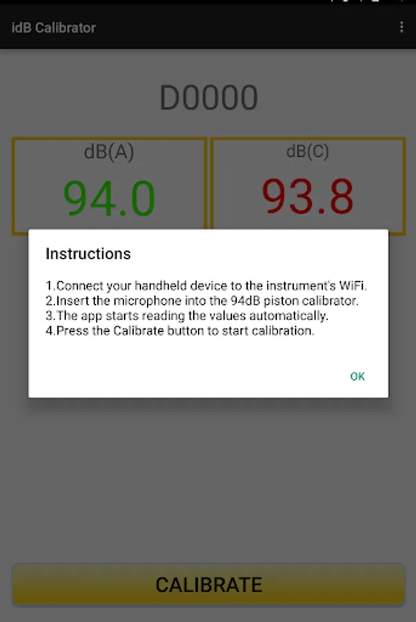 Use this application to calibrate the microphone of the Turnkey idB Noise Monitor or the iVibe using the 94 dB calibrator.
