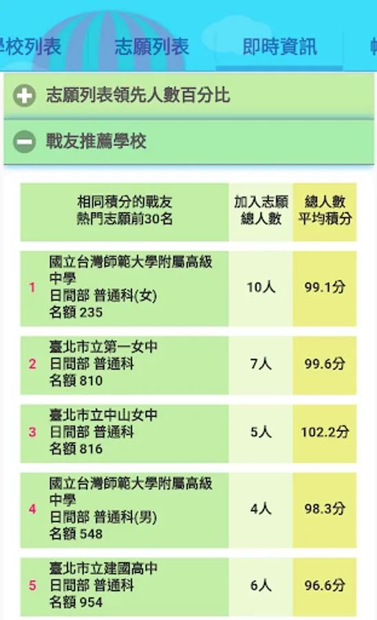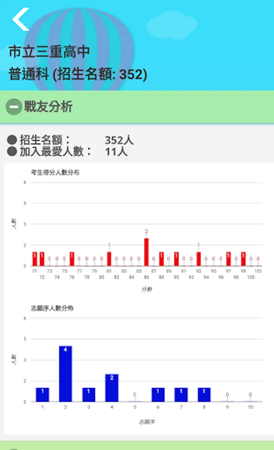 The rules of the brief chapters of the various districts across the country are presented in a simple and clear user interface, which can save candidates from the inconvenience of reading the brief chapters. As long as you select the school district and fill in the complete scores, the system will automatically calculate the candidates' points and provide analysis of the scores of comrades-in-arms.