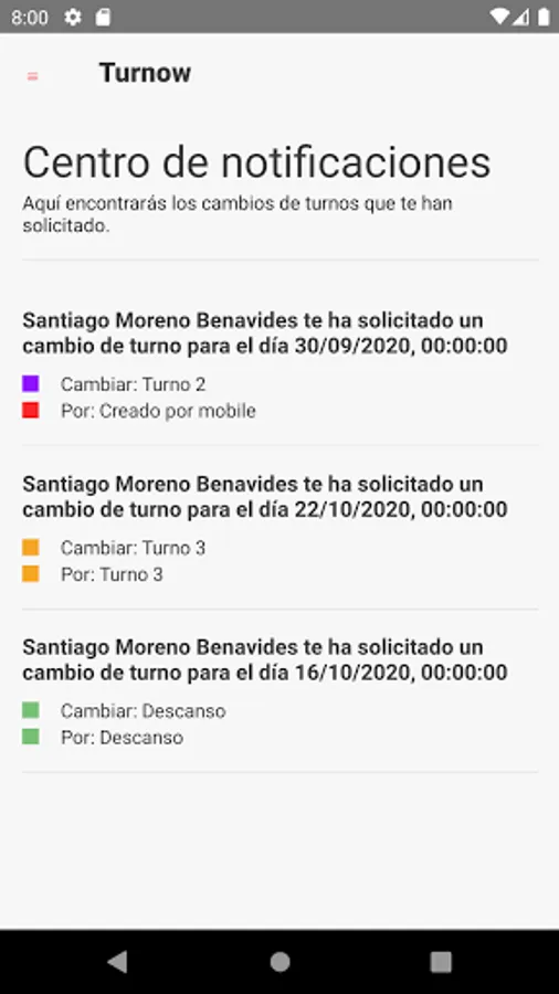 Turnow is the effective solution consistent with the current needs and requirements for staff scheduling in terms of shifts, vacations, leave and other requirements for staff scheduling, all this through a multiplatform that automatically designates shifts attending the administrator or coordinator of this, sending notifications immediately to the involved sellers, operators, guards, etc., in turn they may make requests for vacations, permits or eventual notifications.